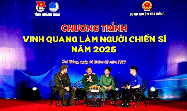Tại chương trình diễn ra phần giao lưu với sự tham gia của các vị khách mời: Trung tá Đinh Xuân Ninh, Phó Chính trị viên, Ban CHQS huyện Trà Bồng; quân nhân xuất ngũ ưu tú Phạm Nhật Hào và tân binh lên đường nhập ngũ Hồ Minh Huy đã khái quát về công tác tuyển quân của huyện Trà Bồng trong năm 2025; mang đến những câu chuyện, những kỷ niệm về thời gian ở trong quân ngũ cũng như ý chí sẵn sàng của thanh niên ngày nay với nhiều cảm xúc, gửi gắm nhiều thông điệp ý nghĩa đến các thanh niên chuẩn bị lên đường thực hiện nghĩa vụ thiêng liêng với Tổ quốc.