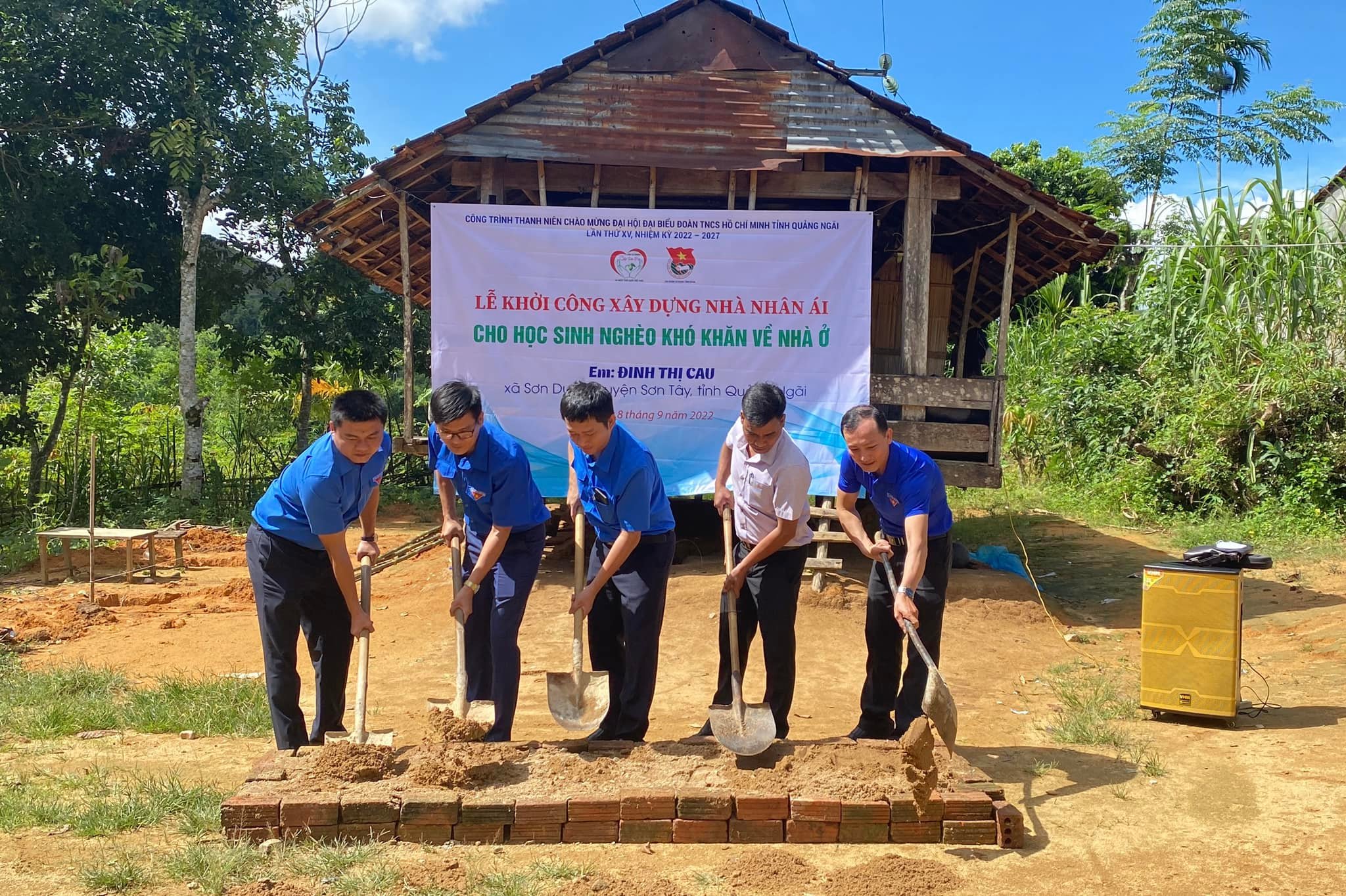 Anh Cao Lê Tùng Nghĩa, Bí thư Tỉnh đoàn; anh Trần Đăng Minh, Phó Bí thư Tỉnh đoàn, Chủ tịch Hội đồng Đội tỉnh; anh Nguyễn Hữu Phú, Bí thư Chi đoàn Cơ quan Tỉnh đoàn; anh Dương Linh, Bí thư Huyện đoàn Sơn Tây và đại diện chính quyền địa phương xã Sơn Dung đã đến dự lễ và thực hiện nghi thức động thổ khởi công xây dựng ngôi nhà nhân ái cho gia đình em Đinh Thị Cau.