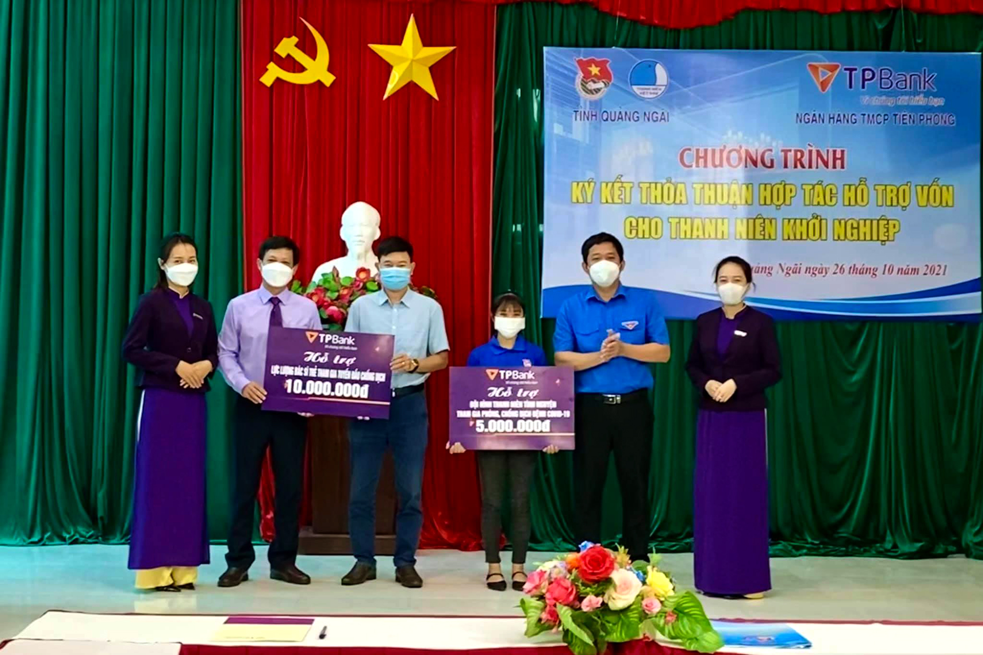 Theo thỏa thuận, Ngân hàng TMCP Tiên Phong chi nhánh Quảng Ngãi hỗ trợ các đội hình thanh niên tình nguyện và đội ngũ y, bác sĩ Câu lạc bộ Thầy thuốc trẻ tỉnh Quảng Ngãi tham gia tuyến đầu chống dịch tổng kinh phí 15 triệu đồng.