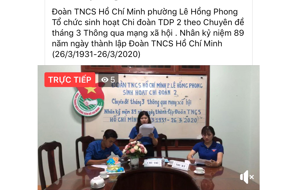 Thành đoàn Quảng Ngãi đã chỉ đạo các đoàn xã, phường và các đoàn trường THPT chọn một chi đoàn tổ chức sinh hoạt chuyên đề tháng 3 bằng hình thức sinh hoạt trực tuyến qua mạng xã hội (sinh hoạt livetream trực tuyến trên trang mạng chi đoàn; sinh hoạt thông qua trao đổi nhắn tin qua nhóm đoàn viên chi đoàn trên zalo, messenger; sinh hoạt thông qua video nhóm đoàn viên chi đoàn trên messenger). Chỉ đạo điểm chi đoàn trường TH Nguyễn Nghiêm, Đoàn phường Nguyễn Nghiêm thực hiện vào ngày 25/3; các chi đoàn thuộc các đoàn cơ sở khác đồng loạt sinh hoạt trực tuyến vào ngày 26/3.