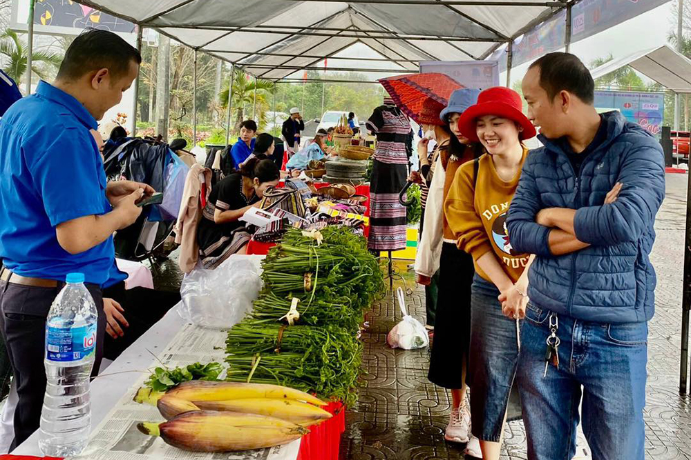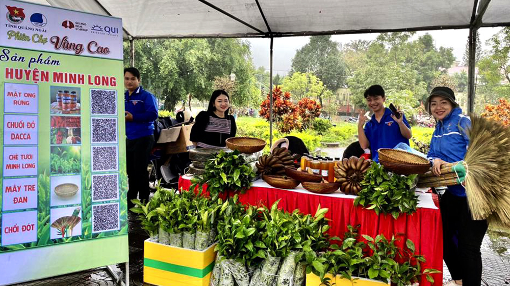 Gian hàng của thanh niên huyện Minh Long cùng đặc sản nổi tiếng Chè Minh Long.