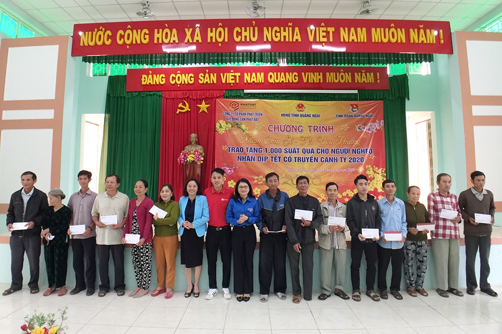 Theo đó, Công ty Cổ phần phát triển bất động sản Phát Đạt TP.HCM hỗ trợ 1.000 suất quà với số tiền 500 triệu đồng, mỗi suất là 500 nghìn đồng (tiền mặt). Công ty cổ phần PVI hỗ trợ 1.300 suất quà tổng trị giá 650 triệu đồng, mỗi suất quà trị giá 500 nghìn đồng (gồm quà và tiền mặt).