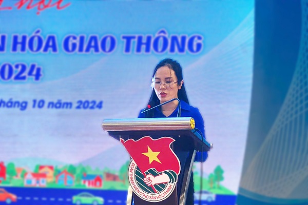 Phó Bí thư Tỉnh đoàn, Chủ tịch Hội LHTN Việt Nam tỉnh Hồ Thị Thu Thanh phát biểu phát động Ngày hội Thanh niên với văn hóa giao thông năm 2024.