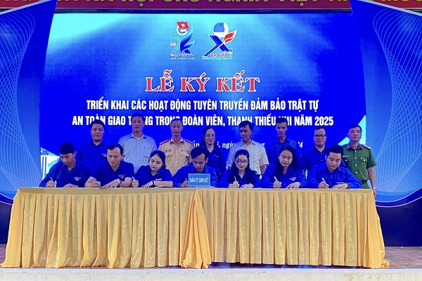 Tại chương trình, các huyện, thị, thành đoàn, đoàn trực thuộc ký kết thực hiện một số chỉ tiêu thực hiện công tác tuyên truyền, đảm bảo TTATGT.