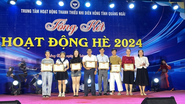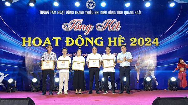 Dịp này Trung tâm Hoạt động Thanh thiếu nhi Diên Hồng trao tặng giấy khen cho 10 giáo viên, cộng tác viên có thành tích xuất sắc trong giảng dạy, huấn luyện; khen thưởng 74 thiếu nhi có thành tích xuất sắc trong sinh hoạt, học tập tại các lớp năng khiếu; các câu lạc bộ, đội nhóm trong khóa hè 2024.