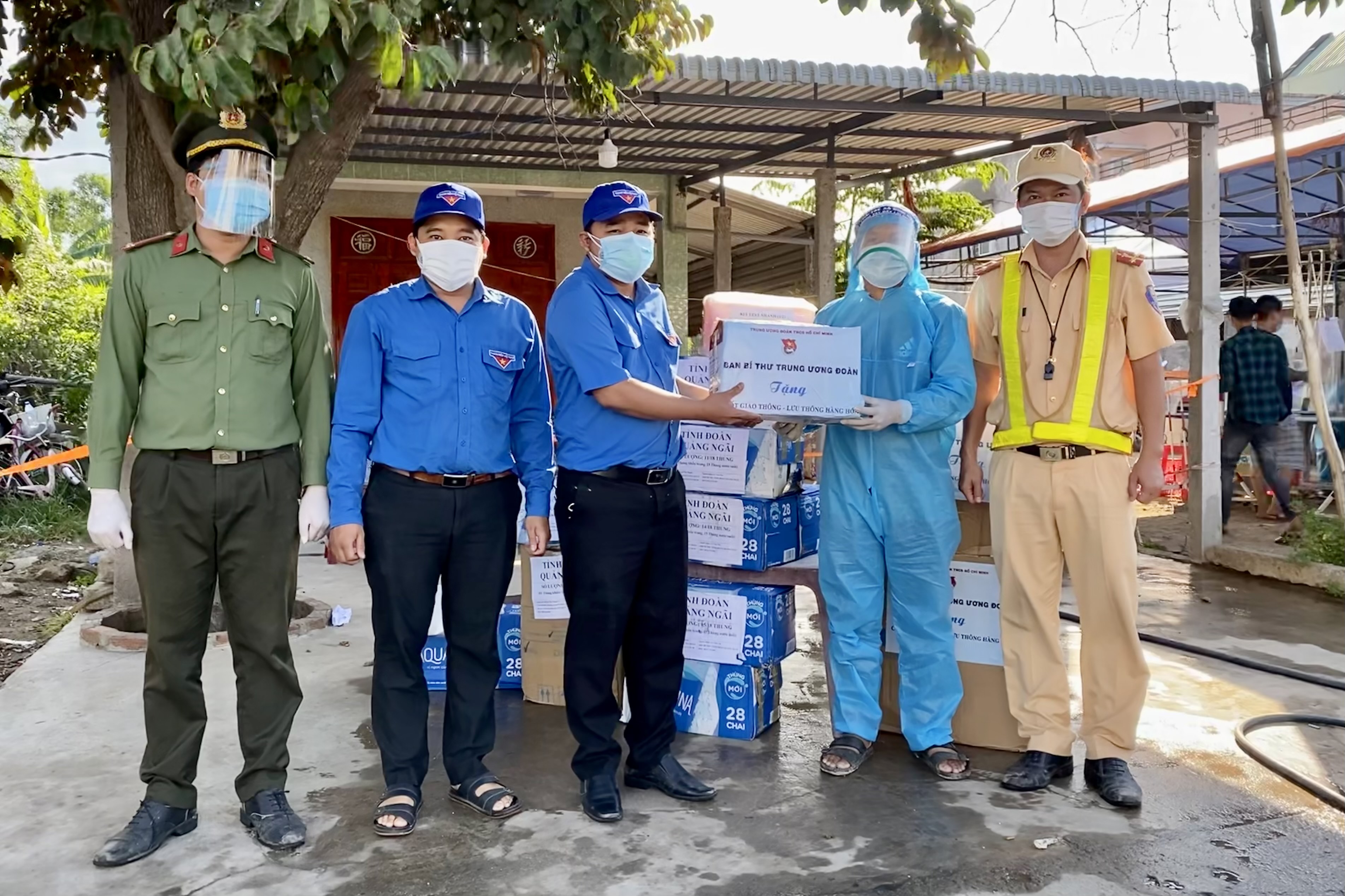 Tại chốt kiểm dịch, đồng chí Phó bí thư, Chủ tịch Hội LHTN tỉnh đã động viên tinh thần, đồng thời trao các phần quà hỗ trợ của Ban Bí thư Trung ương Đoàn và Tỉnh đoàn Quảng Ngãi gồm: 224 chai nước suối, 1 hộp kit test nhanh COVID-19, 1 thùng vật tư y tế và 1 thùng gồm 50 bộ đồ bảo hộ, 3.500 khẩu trang y tế và 20 khẩu trang N95.