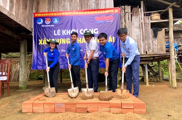 Khởi công xây dựng ngôi nhà nhân ái cho anh Đinh Văn Hậu, Bí thư chi đoàn thôn Đăk Panh (xã Sơn Màu, Sơn Tây).- cán bộ đoàn có hoàn nảnh khó khăn.