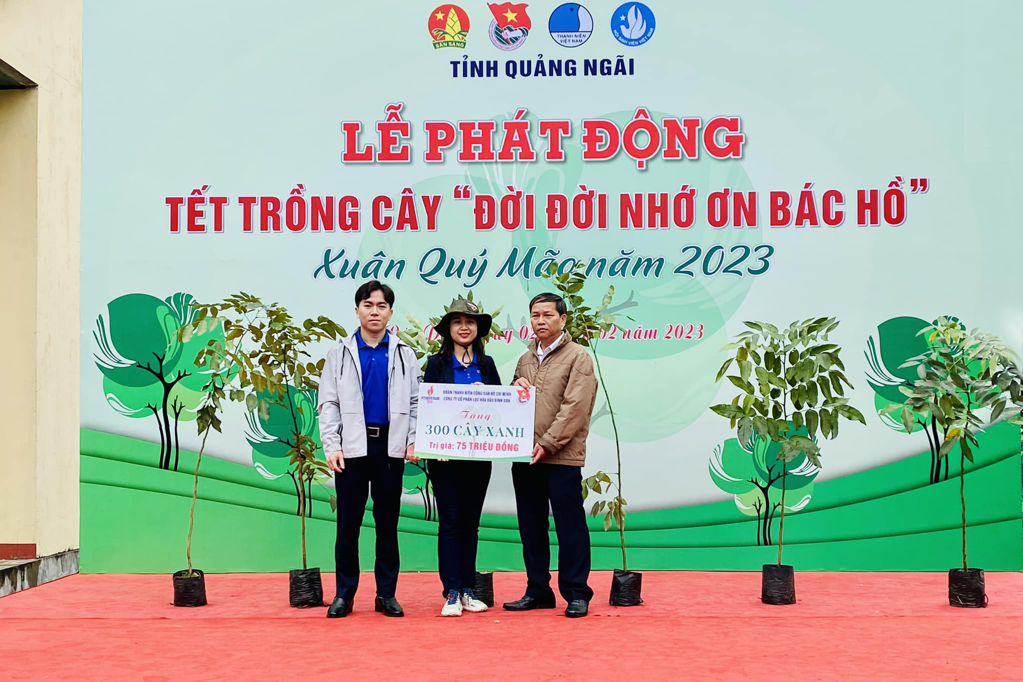 Đoàn Thanh niên Công ty Lọc hóa dầu Bình Sơn trao hỗ trợ hơn 300 cây xanh các loại cho địa phương xã Phổ Cường.