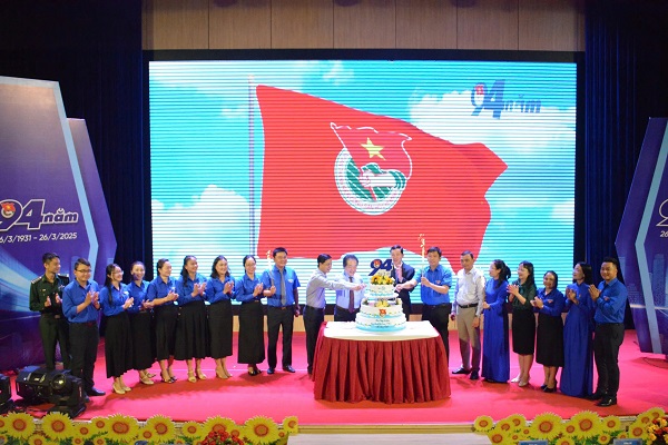 Đại biểu và đoàn viên, thanh niên cùng nhau thắp nến, cắt bánh, mừng sinh nhật 94 năm của Đoàn TNCS Hồ Chí Minh