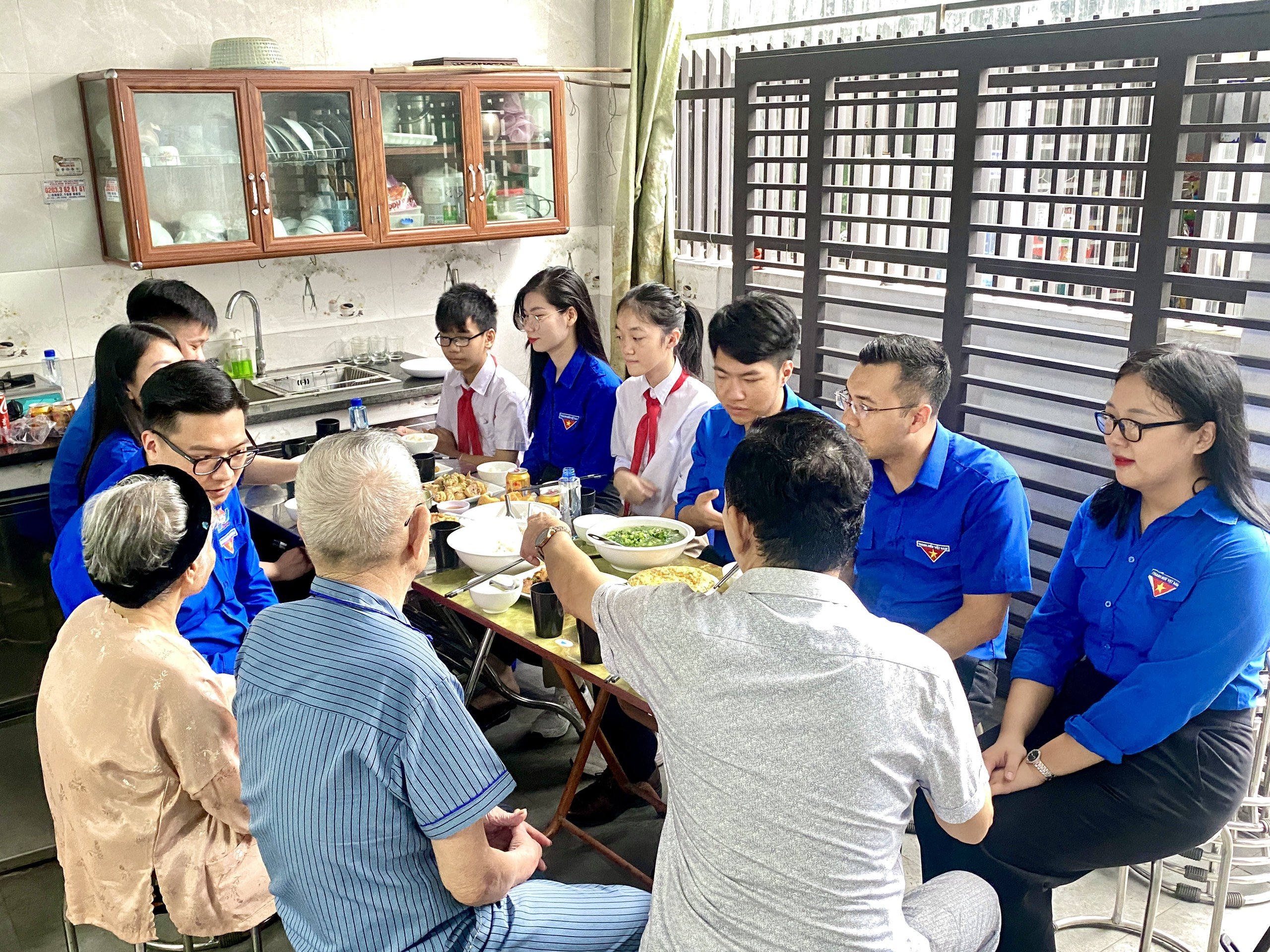 Bữa cơm gia đình diễn ra trong bầu không khí ấm áp, chan hòa tình yêu thương. Các đại biểu đã cùng Mẹ ôn lại những kỷ niệm về những người con đã hy sinh và trò chuyện về cuộc sống hiện tại của gia đình. Mẹ Nguyễn Thị Thực xúc động chia sẻ: “Cảm ơn Đoàn thanh niên đã luôn quan tâm, chăm sóc cho gia đình mẹ. Mẹ rất vui khi được các bạn đoàn viên đến thăm hỏi, động viên không chỉ dịp ngày Thương Binh - Liệt sĩ mà các ngày Lễ, Tết và cả các ngày thường nữa”.