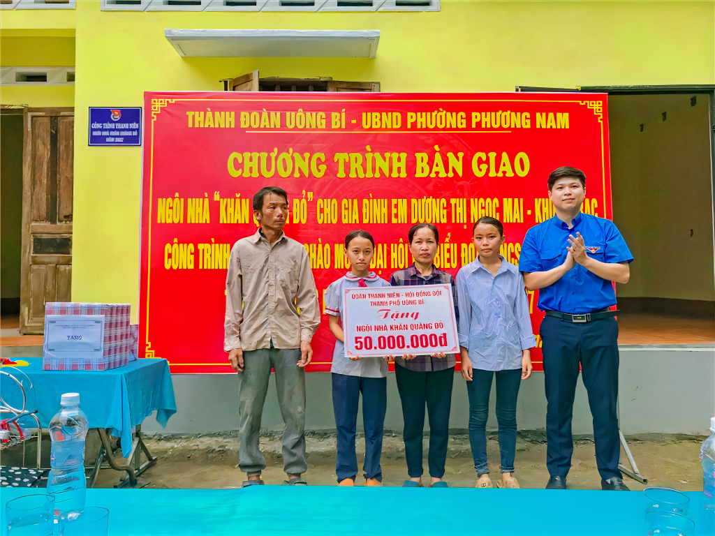 Thành Đoàn Uông Bí trao hỗ trợ 50 triệu đồng xây dựng nhà "Khăn quàng đỏ" cho gia đình em Dương Ngọc Mai (khu Đá Bạc, phường Phương Nam).