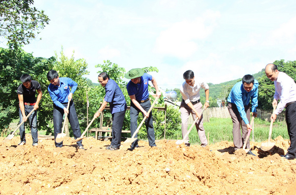 Lãnh đạo tỉnh đoàn cùng các đại biểu khởi công xây nhà cho gia đình anh Thắng