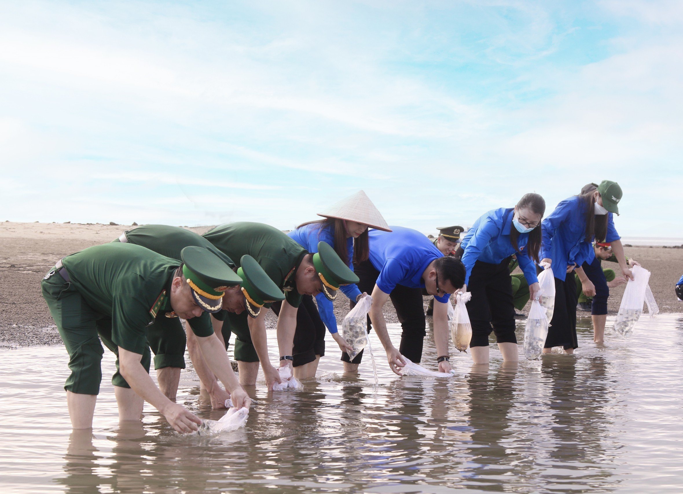 Ngay sau lễ phát động, các đồng chí lãnh đạo cùng hơn 100 cán bộ, chiến sỹ và đoàn viên thanh niên cùng tham gia hoạt động làm sạch biển, thả 2 vạn con tôm giống, 2.000 con cá chim vây vàng giống tái tạo nguồn lợi thủy sản.