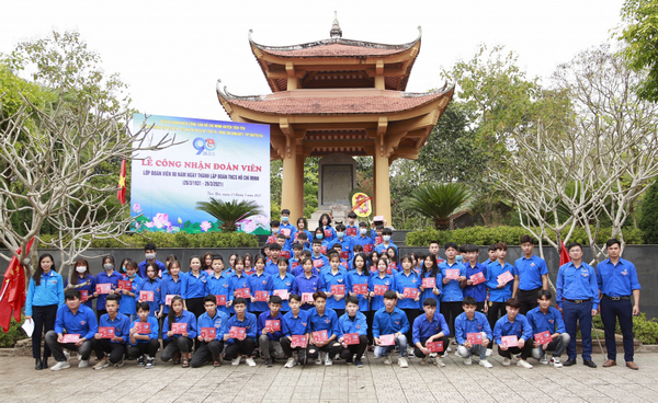 Huyện đoàn Tiên Yên tổ chức kết nạp đoàn viên tại nơi Bác Hồ dừng chân (thôn Xóm Nương, xã Tiên Lãng) nhân kỷ niệm 91 năm Ngày thành lập Đoàn TNCS Hồ Chí Minh. Ảnh: Trần Hoàn (CTV)