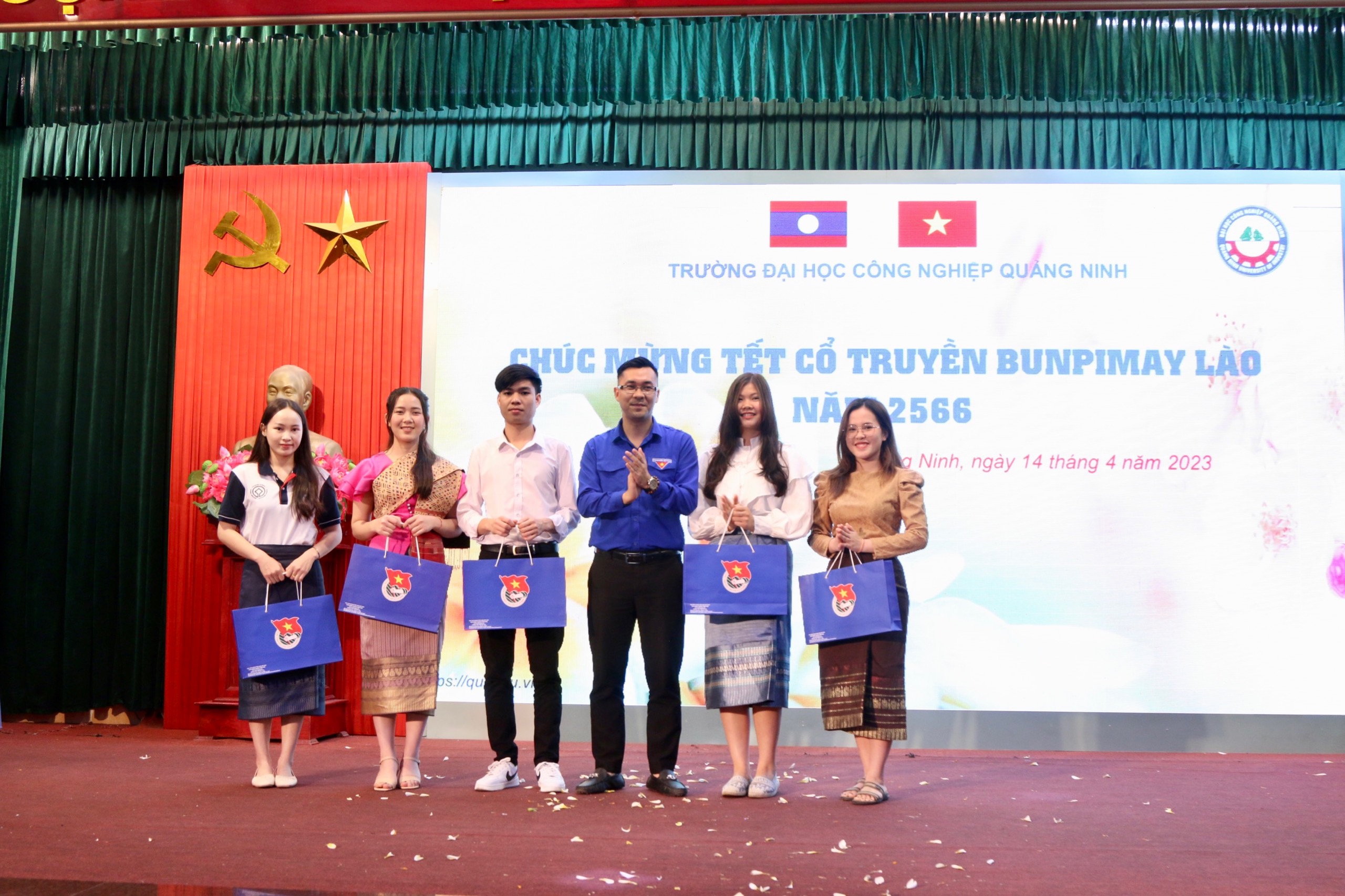 Nhân dịp này, đồng chí Nguyễn Thế Minh, Phó Bí thư Thường trực Tỉnh đoàn và đồng chí Nguyễn Phương Thảo, Phó Bí thư Tỉnh đoàn đã đến chúc tết và tặng quà cho những sinh viên Lào có thành tích xuất sắc trong học tập. Đồng thời, phía Nhà trường cũng có những món quà chúc mừng Tết năm mới cho tất cả các bạn Lưu học sinh.