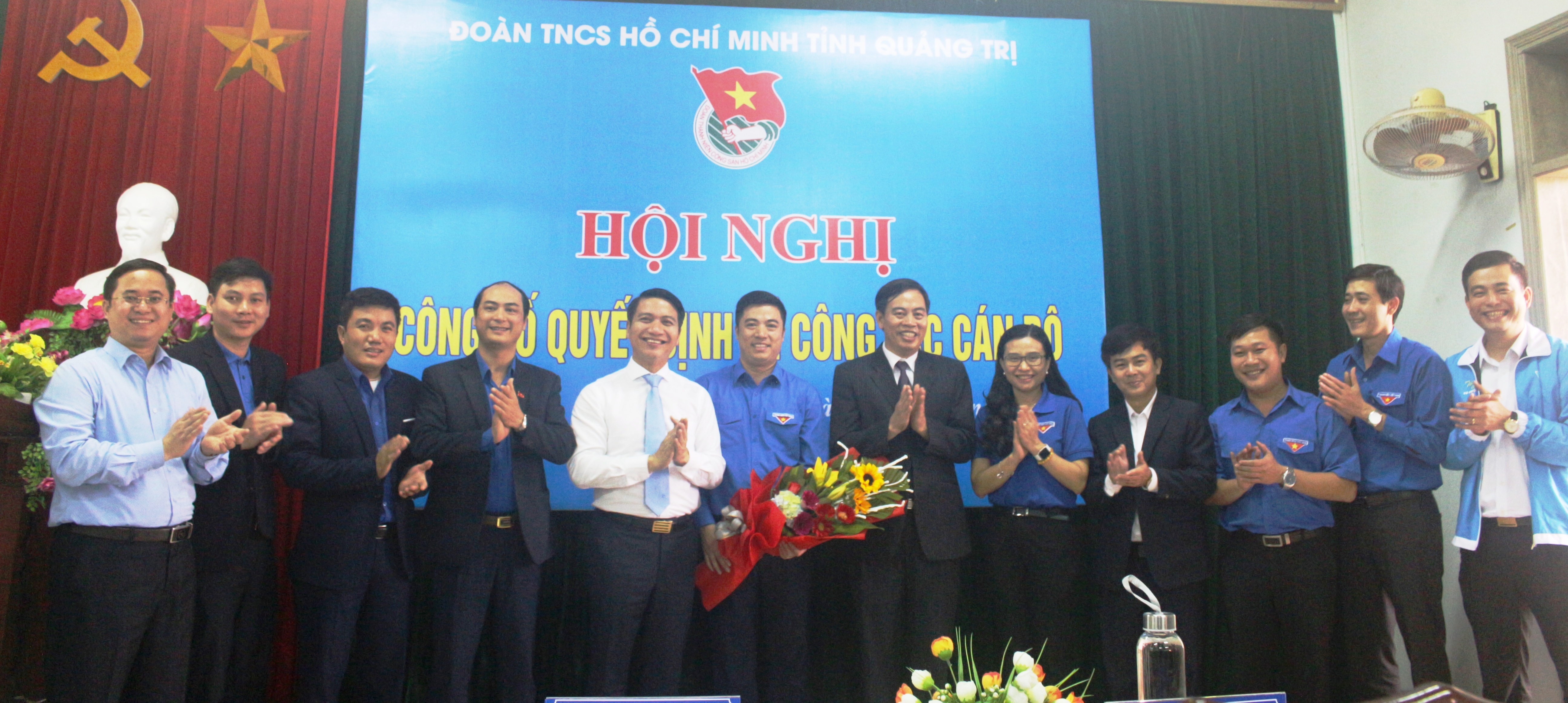 Tặng hoa chúc mừng Tân Phó Bí thư Tỉnh Đoàn Trần Văn Đông