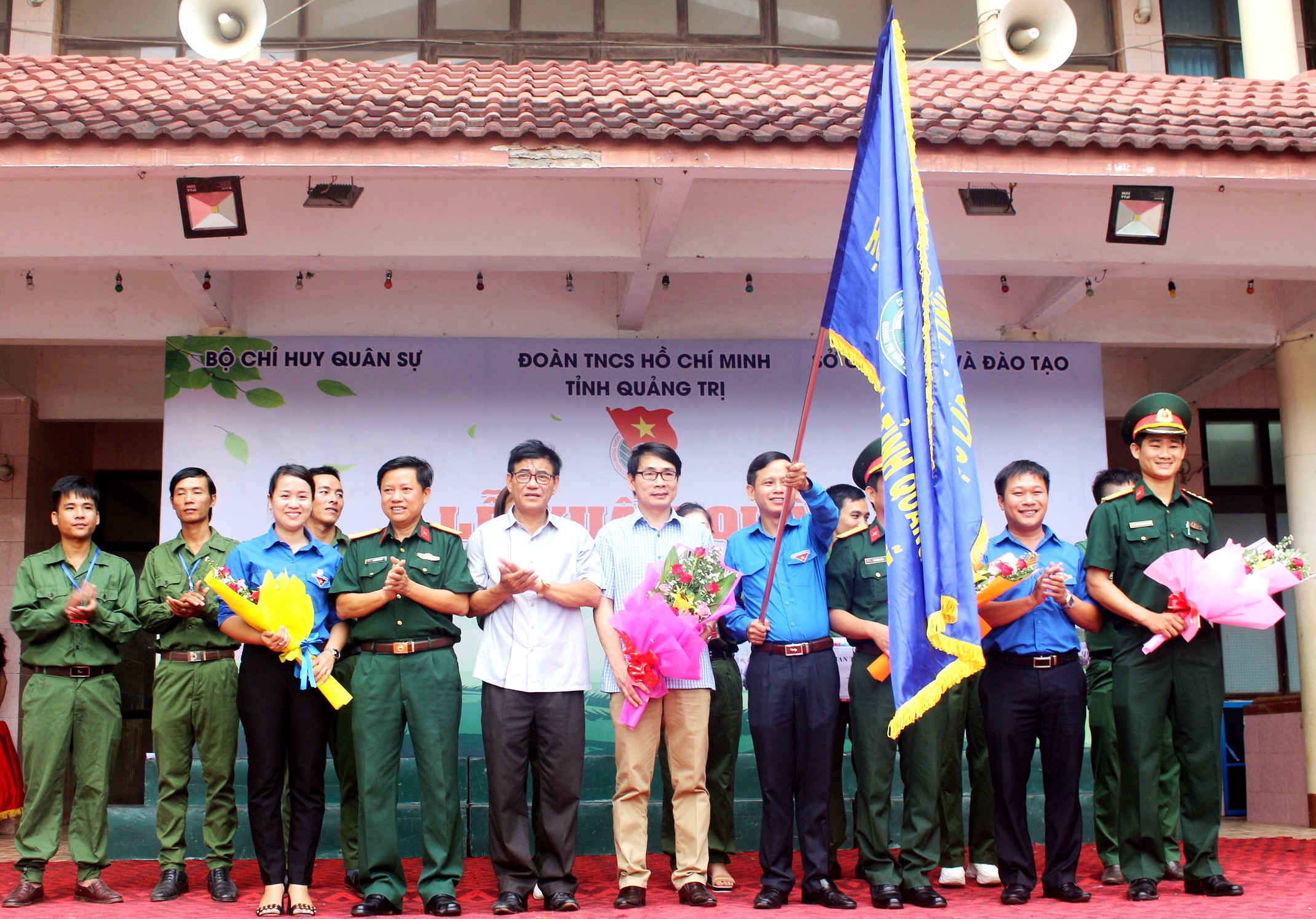 Lãnh đạo Tỉnh Đoàn, Sở Giáo dục và Đào tạo, Bộ Chỉ huy Quân sự tỉnh trao cờ xuất quân cho Ban Tổ chức chương trình
