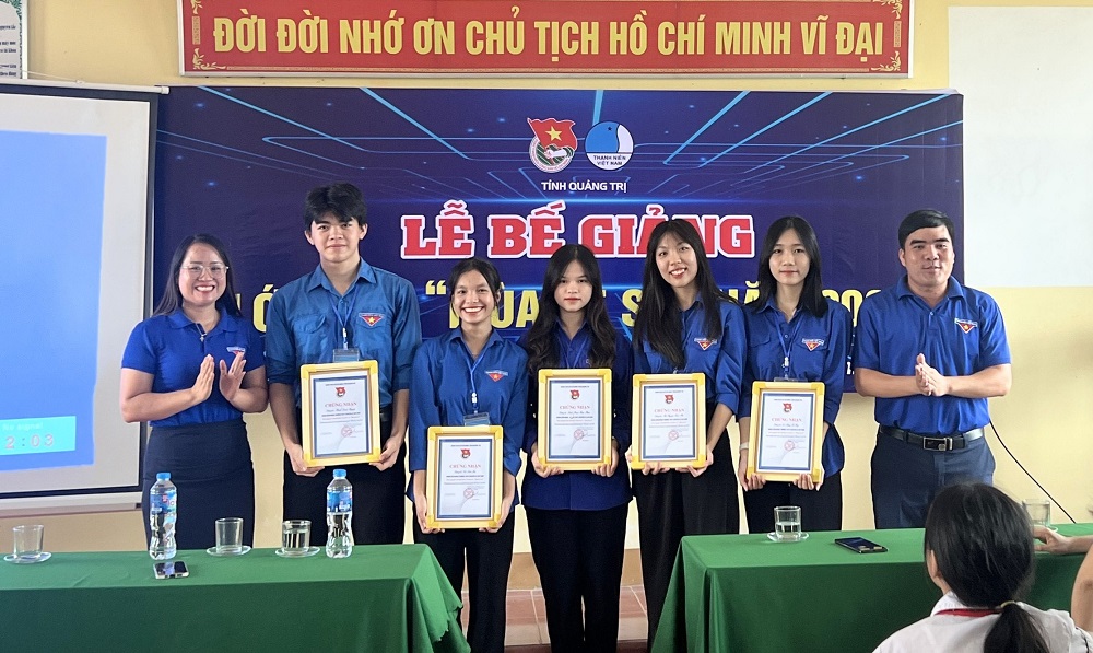 Tham dự Lễ bế giảng có đồng chí Trần Thị Thu - Tỉnh ủy viên, UVBCH TW Đoàn, Bí thư Tỉnh Đoàn; đồng chí Trần Thị Như Quỳnh - UVBTV, Phó Chủ tịch Thường trực Hội LHTN Việt Nam tỉnh cùng các đồng chí trong Thường trực Thành Đoàn Đông Hà, đội hình Trí thức trẻ Mùa hè số và các em học sinh tham gia lớp học.