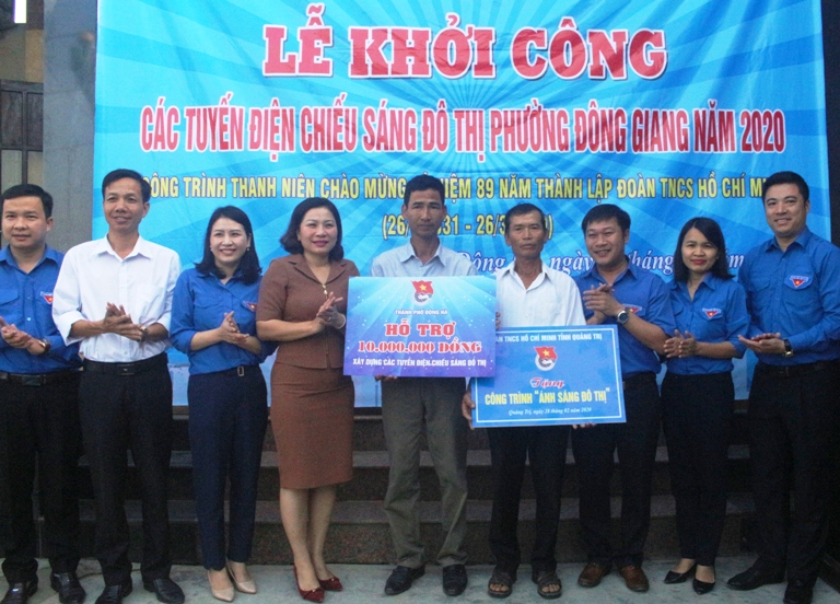 Cùng ngày, Thường trực Tỉnh Đoàn đã dự Lễ khởi công xây dựng công trình “Ánh sáng đô thị” của thành Đoàn Đông Hà chào mừng Tháng Thanh niên năm 2020. Tại Chương trình, Ban Thường vụ Tỉnh Đoàn đã trao tặng kinh phí xây dựng công trình “Ánh sáng đô thị” trị giá 20.000.000 đồng cho đơn vị thành Đoàn Đông Hà.