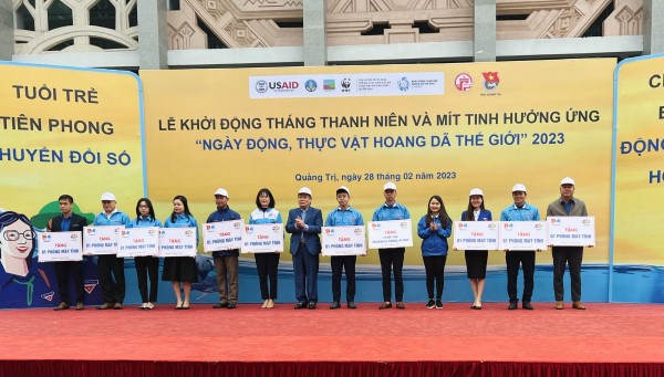 Tại Lễ khởi động, Ban Thường vụ Tỉnh Đoàn trao tặng 116 máy tính cho các cơ sở Đoàn trong toàn tỉnh còn khó khăn về máy tính làm việc và 10 phòng máy tính trong các trường học, Nhà thiếu nhi tỉnh; phối hợp Ngân hàng Chính sách xã hội tỉnh trao cam kết hỗ trợ vốn vay cho 300 mô hình thanh niên phát triển kinh tế trong thanh niên với tổng kinh phí 50 tỷ đồng. Báo Tuổi trẻ phối hợp Ngân hàng Agribank chi nhánh quận Phú Nhuận, thành phố Hồ Chí Minh trao tặng 200 suất học bổng “Gieo mầm tri thức” gồm 200 chiếc xe đạp và 200 phần quà trị giá 400 triệu đồng cho 200 học sinh có hoàn cảnh khó khăn trên địa bàn tỉnh; Tổng Công ty Thương mại Quảng Trị phối hợp Ban Thường vụ Tỉnh Đoàn nhận đỡ đầu 05 em học sinh mồ côi có hoàn cảnh khó khăn trên địa bàn tỉnh với mức hỗ trợ 500.000 đồng/tháng đến năm 18 tuổi. Đồng thời, Ban Thường vụ Tỉnh Đoàn, Ban Quản lý Dự án VFBC tỉnh Quảng Trị phối hợp phát động Cuộc thi sáng tác các sản phẩm truyền thông với chủ đề “Thanh niên chung tay bảo vệ các loại động, thực vật hoang dã” trong đoàn viên, thanh thiếu nhi. Đặc biệt, chương trình đã tiến hành Nghi thức ký cam kết chung tay bảo vệ động, thực vật hoang dã, không mua bán, tiêu thụ động vật hoang dã bất hợp pháp.