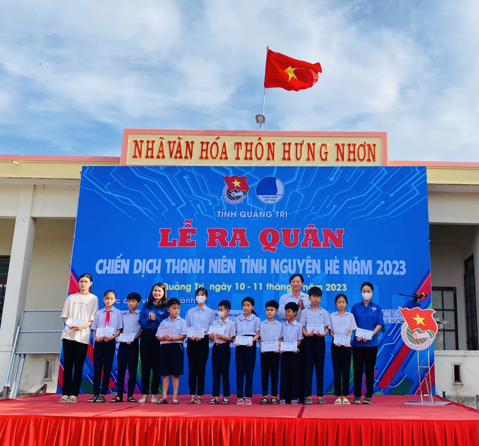Trong chương trình, Ban Thường vụ Tỉnh Đoàn, Ban Thư ký Hội LHTN Việt Nam tỉnh trao tặng 60 máy tính cho 06 đơn vị Đoàn cấp huyện để triển khai mô hình “Trang bị kiến thức tin học cho trẻ em miền núi và các xã bãi ngang ven biển”; trao tặng 20 máy tính cho Trường TH&THCS Hải Hoà, Trường TH&THCS Hải Tân; Công ty xi măng Bỉm Sơn trao tặng 10 tấn xi măng xây dựng đường bê tông nông thôn; Công ty TNHH Bia Carlsberg Việt Nam tại Quảng Trị hỗ trợ 16 triệu đồng cho hoạt động chiến dịch tình nguyện Hè năm 2023; ĐTN khối các trường THPT, Trung tâm GDNN-GDTX trên địa bàn tỉnh xây dựng bê tông hoá 01 “Sân chơi cho em”; trao tặng 10 tấn xi măng và công trình “Sân chơi cho người già” cho thôn Hưng Nhơn, xã Hải Phong; Đoàn khối Cơ quan và Doanh nghiệp tỉnh trao tặng 02 km công trình thanh niên “Hệ thống pano tuyên truyền” cho xã Hải Phong; ĐTN BCH Quân sự tỉnh và ĐTN BCH Bộ đội Biên phòng tỉnh trao tặng công trình tuyến đường bê tông nông thôn cho thôn Hưng Nhơn, xã Hải Phong; ĐTN Công an tỉnh trao tặng công trình tuyến đường bê tông nông thôn cho thôn Hội Điền, xã Hải Phong; Huyện Đoàn Hải Lăng trao tặng 01 công trình “Sân chơi cho em”; Đoàn khối các trường Cao đẳng trên địa bàn tỉnh trao tặng công trình Biển cảnh báo đuối nước và sân chơi phòng, chống đuối nước cho trẻ em tại thôn Hưng Nhơn, xã Hải Phong.