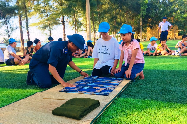 Các chiến sĩ nhí được trang bị những kĩ năng cần thiết trong chương trình “Chúng em làm chiến sĩ cảnh sát biển”