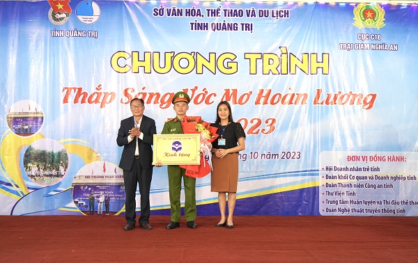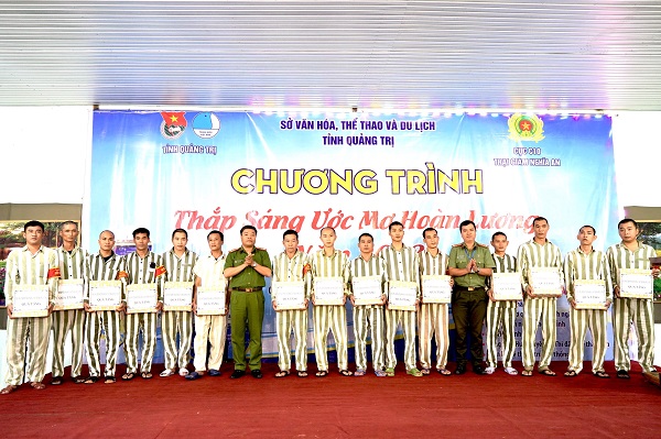 Dự chương trình có các đồng chí: Nguyễn Huy Hùng - PGĐ Sở VH-TT-DL; Nguyễn Quốc Toản - Phó Bí thư Tỉnh Đoàn; Đỗ Huyền Tâm - Giám thị Trại giam Nghĩa An; Phạm Trường Sơn - Chủ tịch Hội Doanh nhân trẻ tỉnh cùng các đồng chí trong đoàn công tác Tỉnh Đoàn, Thường trực Đoàn TN Công an tỉnh, Đoàn khối CQ&DN tỉnh, Huyện Đoàn Cam Lộ, Hội Doanh nhân trẻ tỉnh và Ban giám thị, Chỉ huy Trại giam Nghĩa An.