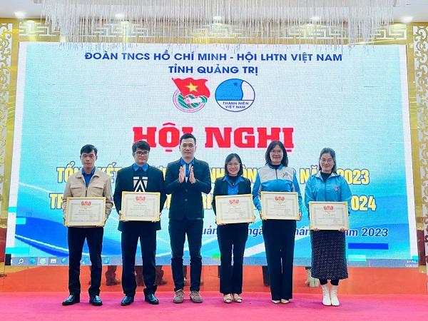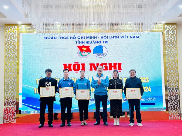 Ủy ban Hội LHTN Việt Nam tỉnh tặng 06 cờ thi đua xuất sắc, 05 bằng khen cho các đơn vị xuất sắc trong công tác Hội và phong trào thanh niên; tặng bằng khen 07 tập thể cơ sở và 05 cá nhân vì đã có thành tích trong công tác Hội và phong trào thanh niên năm 2023.