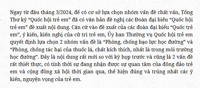 Quốc hội trẻm em: Lắng nghe trẻ em khóc, trẻ em cười