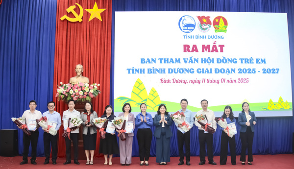 Các thành viên Ban tham vấn Hội đồng trẻ em tỉnh Bình Dương ra mắt nhận nhiệm vụ