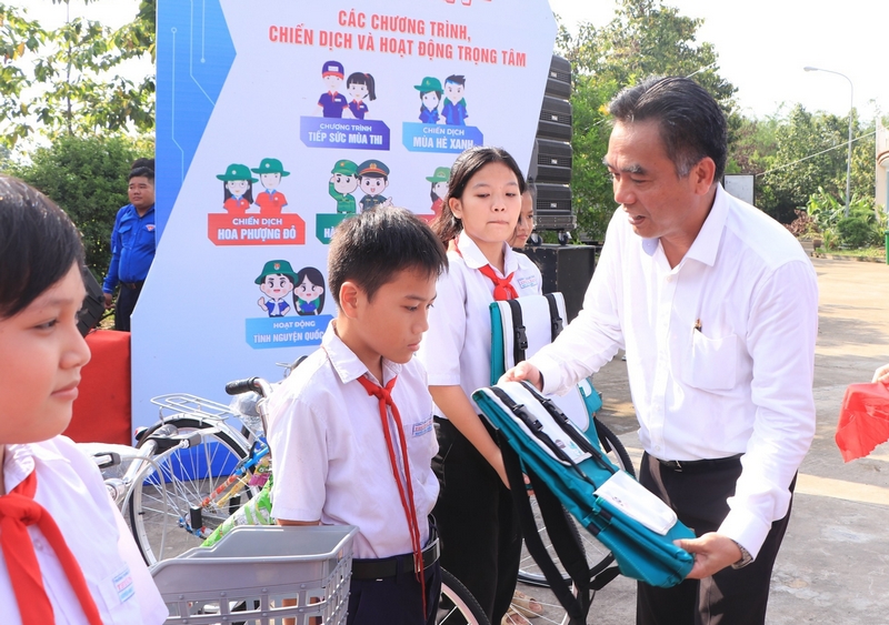 Đồng thời, trao 10 suất học bổng và 10 chiếc xe đạp cho các em thiếu nhi có hoàn cảnh khó khăn, vượt khó học tốt vươn lên trong cuộc sống trên địa bàn huyện Bắc Tân Uyên nhân kỷ niệm 82 năm ngày Thành lập Đội thiếu niên Tiền phong Hồ Chí Minh và quốc tế thiếu nhi 1/6.