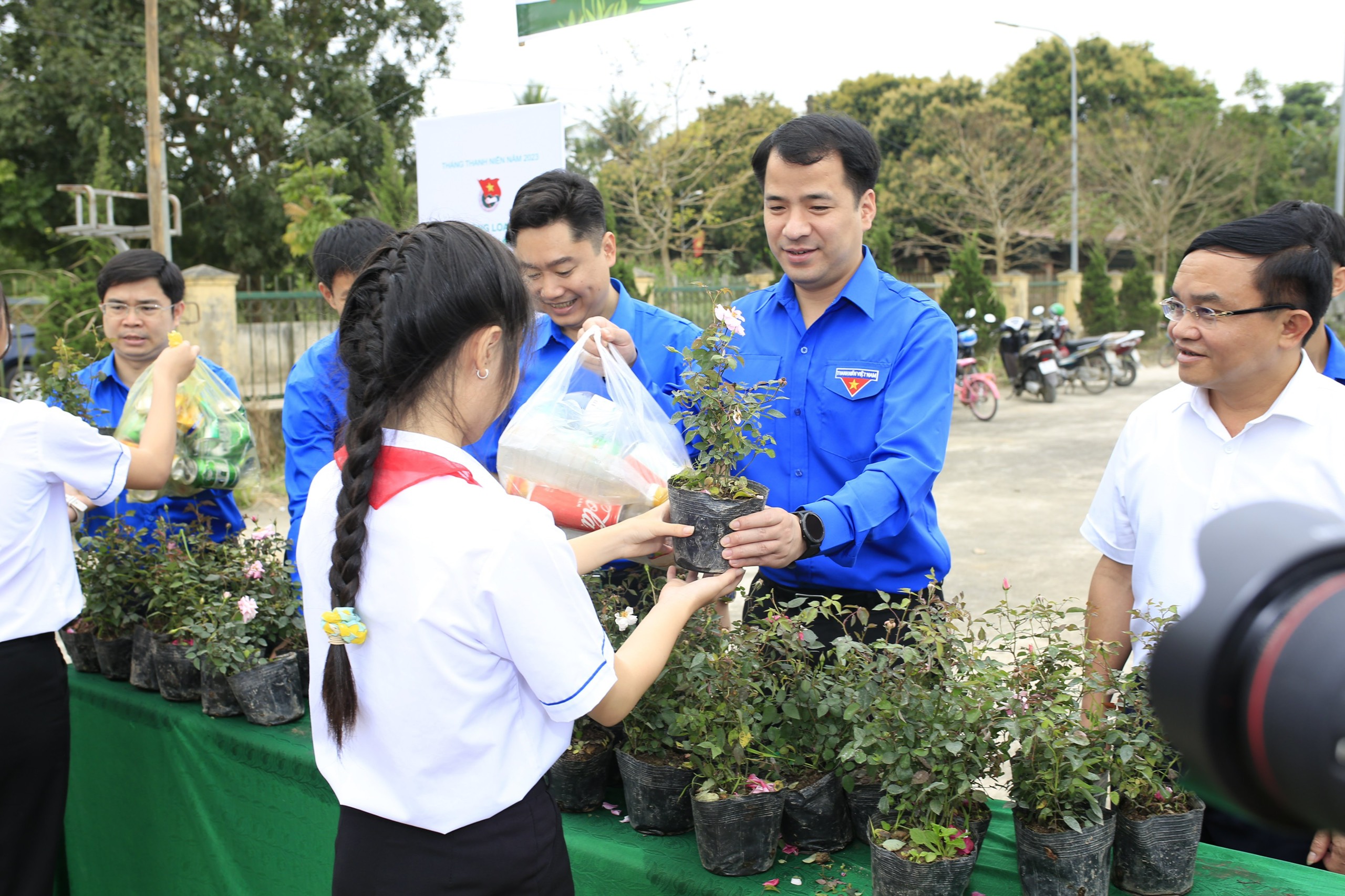 Bí thư T.Ư Đoàn Ngô Văn Cương hưởng ứng chương trình "Đổi phế liệu lấy cây xanh"