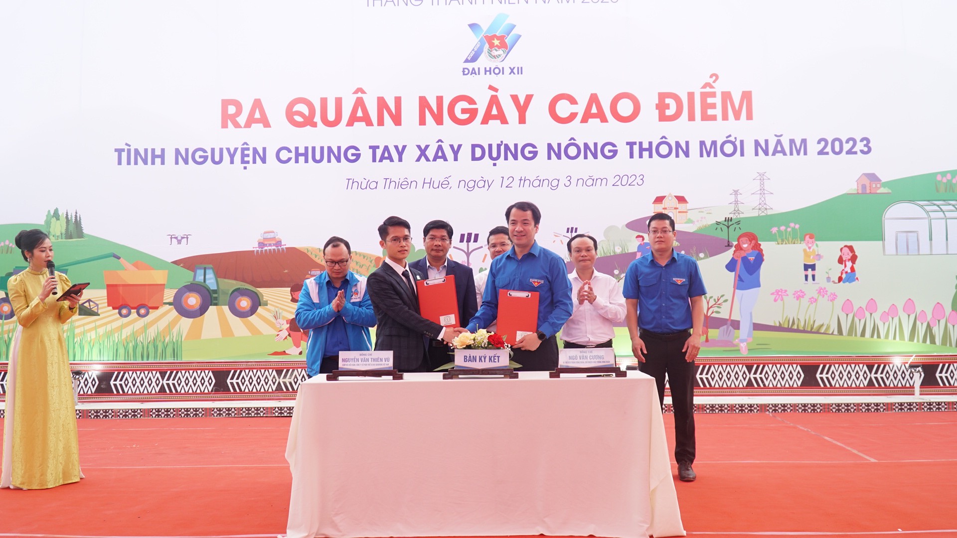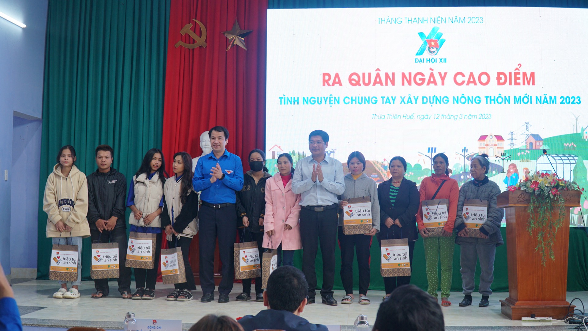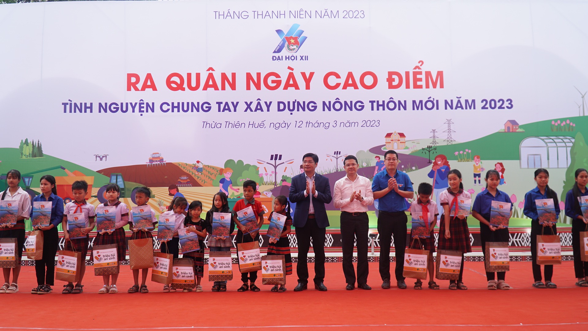 Tại lễ ra quân, Trung ương Đoàn đã hỗ trợ Tỉnh Đoàn Thừa Thiên Huế nguồn lực xây dựng nông thôn mới thôn, bản gồm: 02 mô hình sinh kế cho thanh niên trị giá 01 tỷ đồng; 01 Gian hàng nông nghiệp số trên nền tảng Metaverse trị giá 100 triệu đồng; 01 mô hình phân loại chất thải tại nguồn phát sinh trị giá 100 triệu đồng; 02 Hội nghị tập huấn cho thanh niên trị giá 200 triệu đồng; 500 cây dừa xiêm; 50 túi an sinh trị giá 13 triệu đồng; 20 suất quà cho gia đình chính sách, gia đình của cựu thanh niên xung phong trị giá 20 triệu đồng.