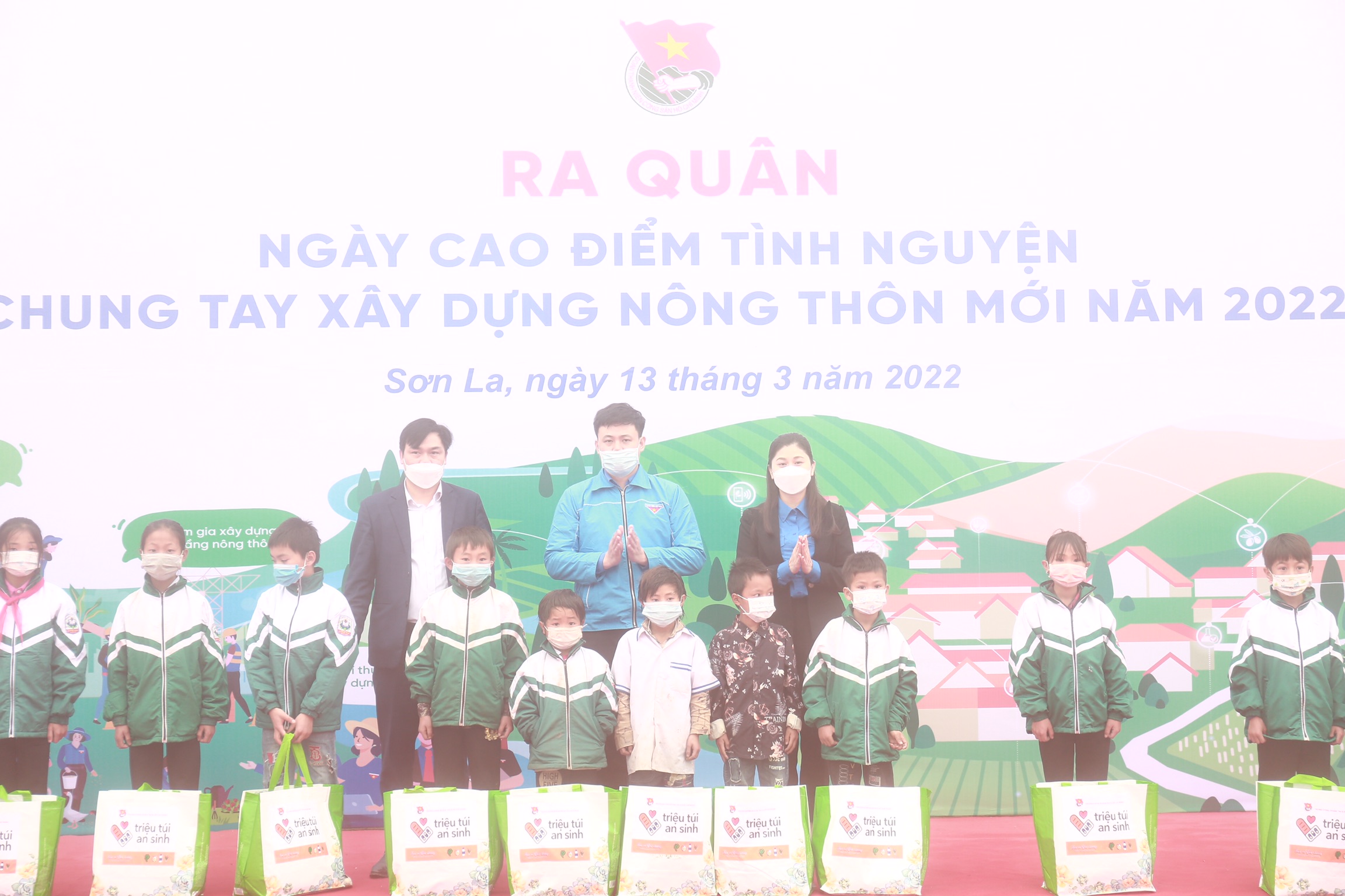 Nhân dịp này, Trung ương Đoàn trao tặng cho tỉnh Sơn La 1 mô hình “Vườn Đoàn” trị giá 50 triệu đồng; 100 túi an sinh trị giá 25 triệu đồng; 20 Bồn chứa nước (loại 1000 lít) trị giá 55 triệu đồng; 1 bộ thiết bị “Sàn nông sản trong vũ trụ ảo Metasquare” trị giá 40 triệu đồng.