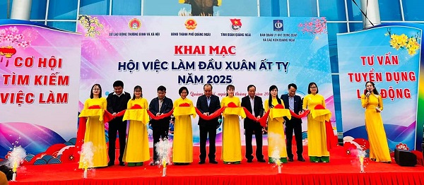 Lãnh đạo UBND tỉnh, Tỉnh đoàn và các sở, ngành cắt băng khai mạc Hội việc làm đầu Xuân Ất Tỵ 2025