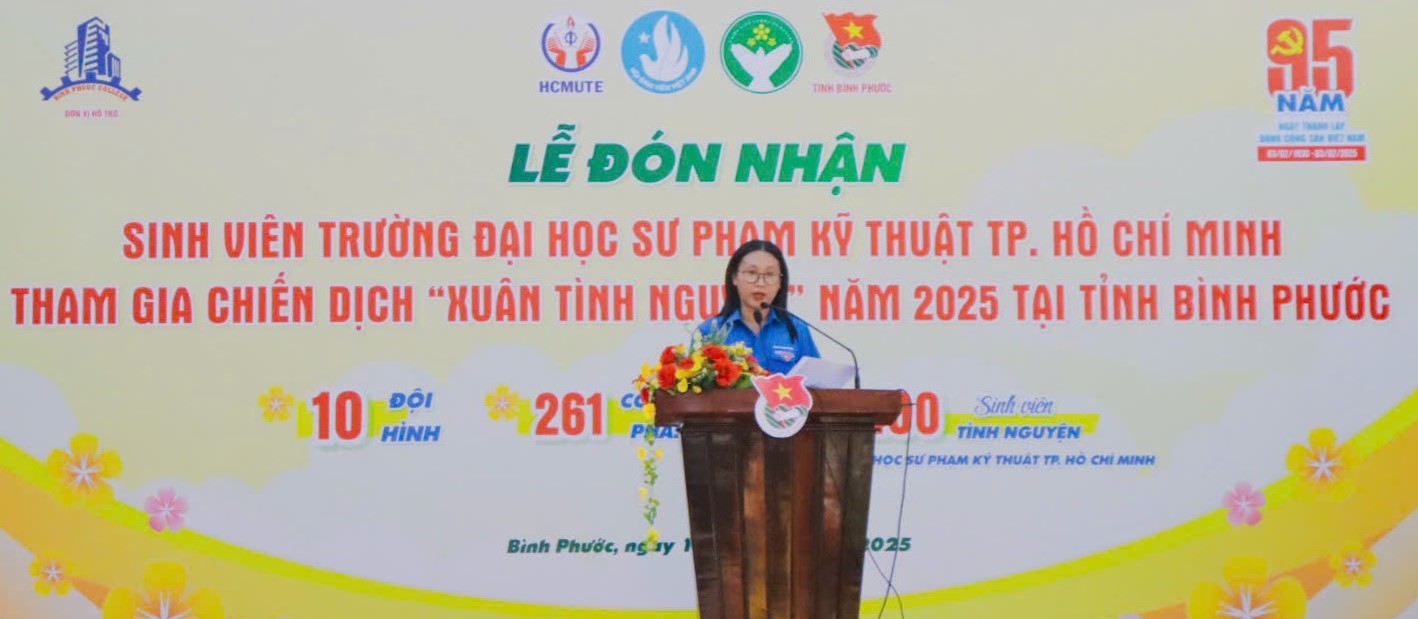ĐTN: Sáng 16/01/2025, tại tỉnh Bình Phước, Tỉnh đoàn phối hợp với Đoàn TNCS Hồ Chí Minh và Hội Sinh viên Trường Đại học Sư phạm Kỹ thuật Thành phố Hồ Chí Minh tổ chức Lễ đón nhận sinh viên tham gia chiến dịch “Xuân tình nguyện” tại tỉnh Bình Phước năm 2025.