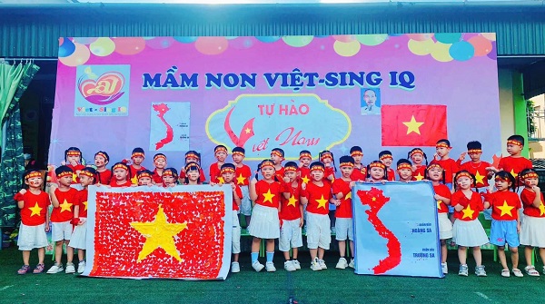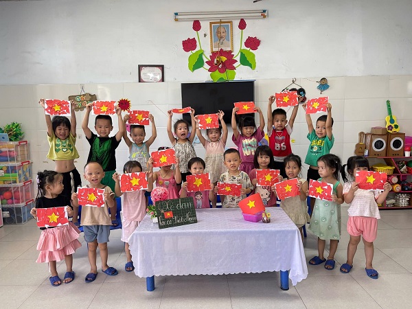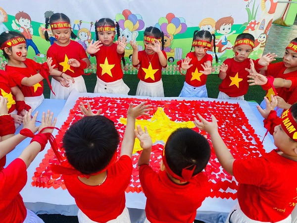 Hoạt động tạo hình Lá cờ Tổ quốc Việt Nam để Chào Mừng Ngày Quốc Khánh 2/9 tại Trường mầm non - Việt Úc, thành phố Vinh, tỉnh Nghệ An.