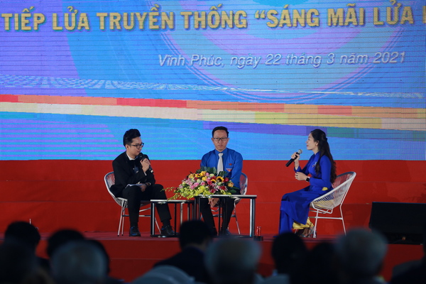 Tại chương trình, các đại biểu đã tham gia "Giao lưu tiếp lửa truyền thống" với ba chủ đề chính: Tiếp lửa truyền thống cán bộ Đoàn; Dấu ấn phong trào thanh niên; Khát vọng tuổi trẻ, hiến kế cho Đoàn.