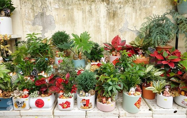 "Chẳng hạn, màu đỏ hợp với mệnh hỏa thì có cây vạn lộc. Cây kim ngân trồng chung với vạn lộc có ý nghĩa mang lại sự sung túc, may mắn, tài lộc cho gia chủ. Khi kim ngân, vạn lộc, cỏ may mắn phối hợp với nhau có ý nghĩa mang lại may mắn. Nhiều cặp đôi thường chọn mua tiểu cảnh cây hạnh phúc vào ngày hôn lễ để thay cho nghi thức cắt bánh kem với ý nghĩa vun vén cho tổ ấm nhỏ", Thoa cho biết.