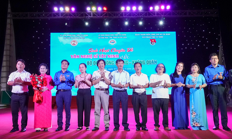 Buổi Sinh hoạt chuyên đề văn nghệ sĩ Tây Ninh với Bội đội Phòng không - Không quân được tổ chức nhằm tuyên truyền phổ biến các sáng tác mới của lực lượng văn nghệ sĩ tỉnh nhà, các tác phẩm ca ngợi, tôn vinh về những phẩm chất quý báu của Bộ đội Phòng không - không quân.