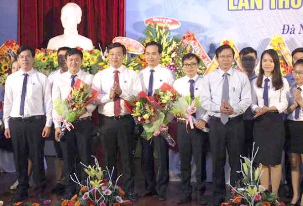Đồng chí Lê Quốc Phong, Ủy viên dự khuyết BCH Trung ương Đảng, Bí thư thứ nhất Trung ương Đoàn, Chủ tịch Trung ương Hội Sinh viên Việt Nam tặng hoa chúc mừng BCH Hội Sinh viên Việt Nam TP. Đà Nẵng khóa mới