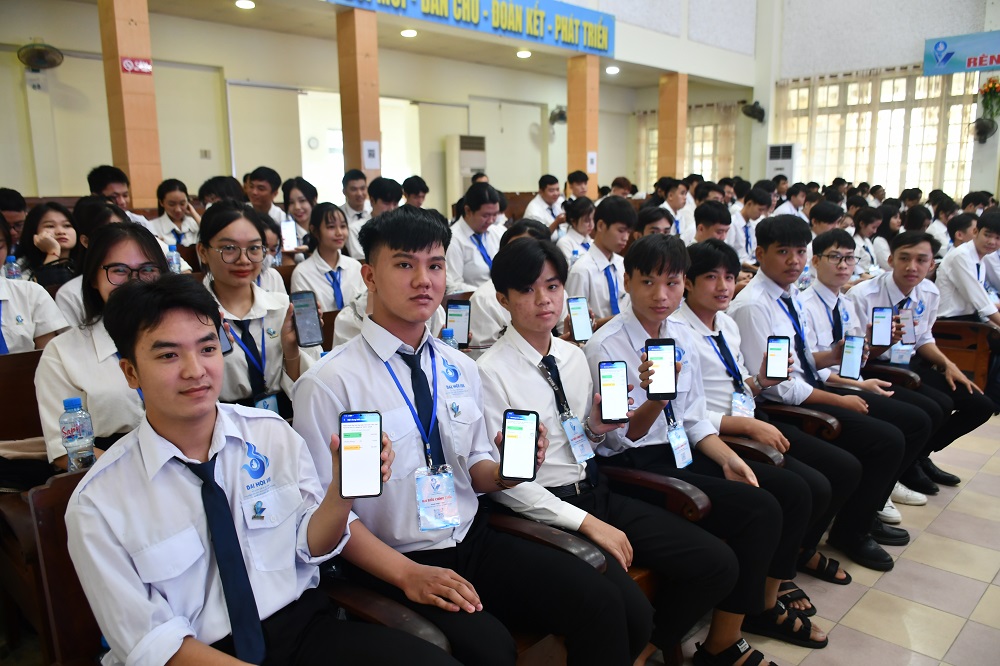 Các đại biểu biểu quyết các chỉ tiêu trong nhiệm kỳ tới thông qua app Đại hội Hội Sinh viên.