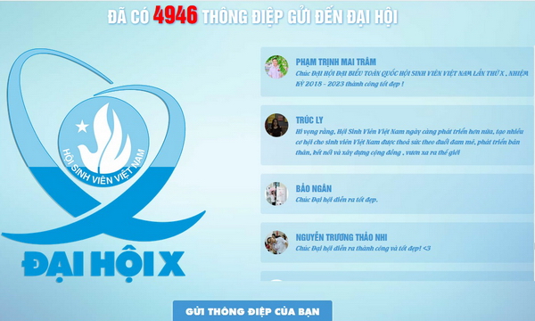 Tính đến sáng 6/12, đã có gần 5.000 thông điệp được gửi đến Đại hội thông qua trang web: http://thongdiepsinhvien.vn/.