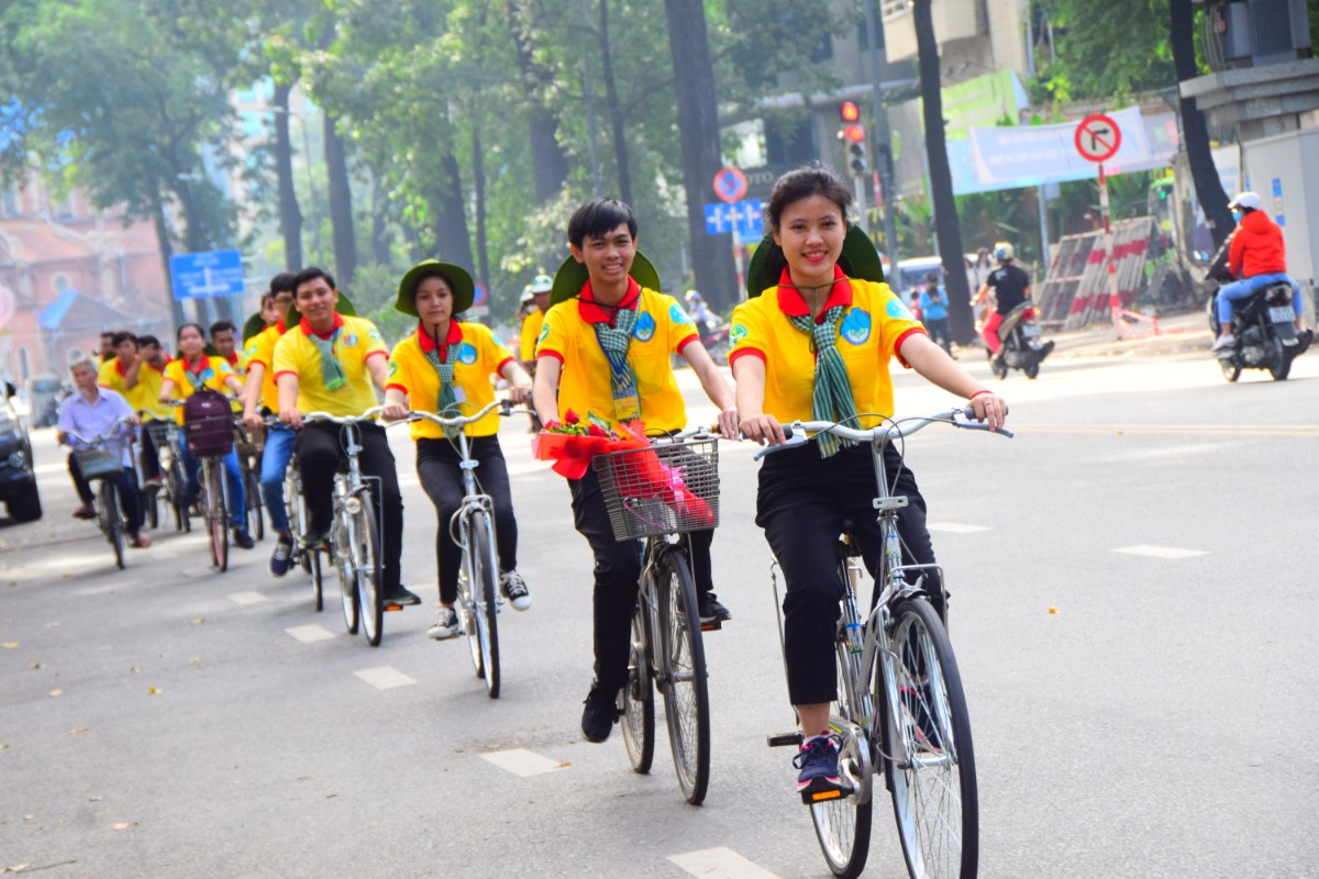 50 sinh viên tình nguyện diễu hành xe đạp tuyên truyền "Tết văn minh" đến người dân thành phố |