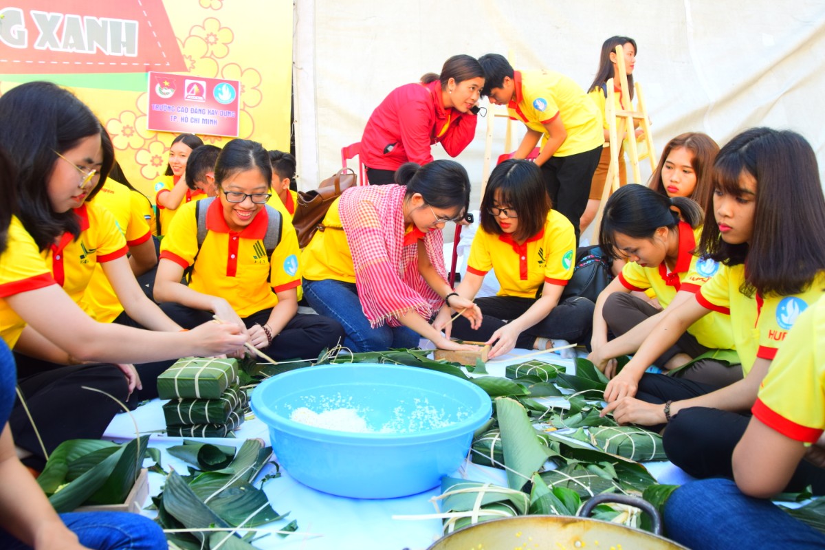 Sinh viên bắt tay vào gói bánh chưng, bánh tét tặng những người khó khăn. |