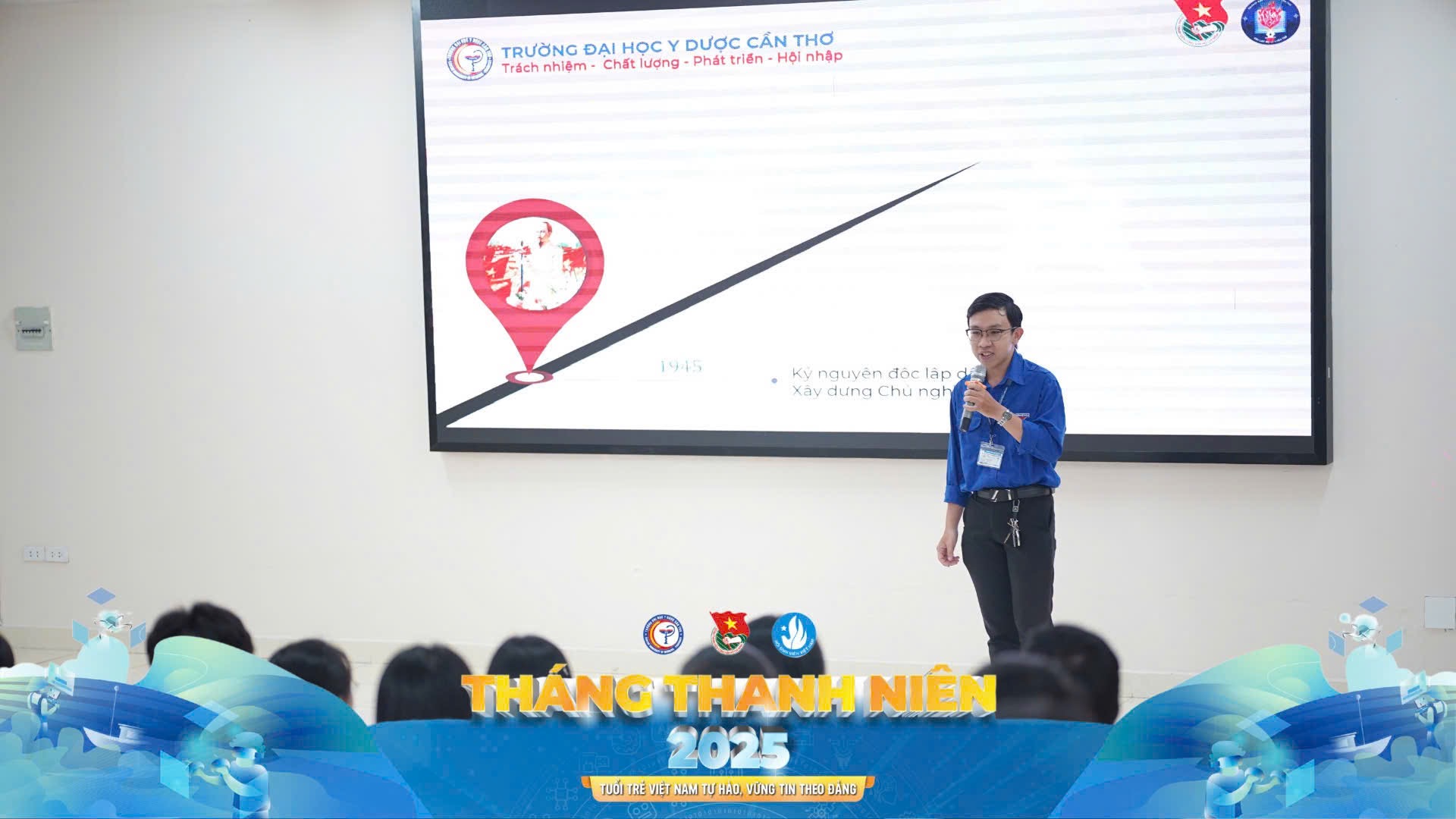 Sau phần công chiếu phim, chương trình tiếp tục với buổi sinh hoạt chuyên đề “Sinh viên CTUMP trong kỷ nguyên vươn mình của dân tộc” do các thành viên CLB Lý luận trẻ trình bày. Chuyên đề tập trung phân tích ý nghĩa của “Kỷ nguyên mới – kỷ nguyên vươn mình của dân tộc”, giúp sinh viên hiểu rõ hơn về vai trò của thế hệ trẻ trong công cuộc xây dựng và phát triển đất nước. Nội dung thảo luận không chỉ khơi dậy lòng yêu nước, tinh thần tự hào dân tộc mà còn truyền cảm hứng về ý chí vươn lên, khát vọng làm giàu chính đáng và trách nhiệm đóng góp cho sự nghiệp chung của quê hương, đất nước. Các bạn sinh viên tham gia đã có cơ hội lắng nghe, trao đổi ý kiến và cùng nhau suy ngẫm về những giá trị lịch sử, cũng như con đường mà thế hệ trẻ cần hướng đến để góp phần vào sự phát triển của đất nước trong bối cảnh hội nhập sâu rộng hiện nay.