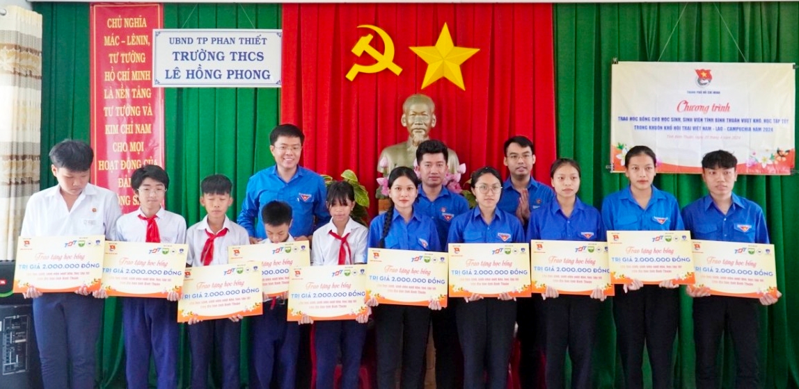 Ngoài ra, trong dịp này, Thành Đoàn TP. Hồ Chí Minh cũng đã trao tặng 15 suất học bổng cho các thanh thiếu nhi và sinh viên tỉnh Bình Thuận.