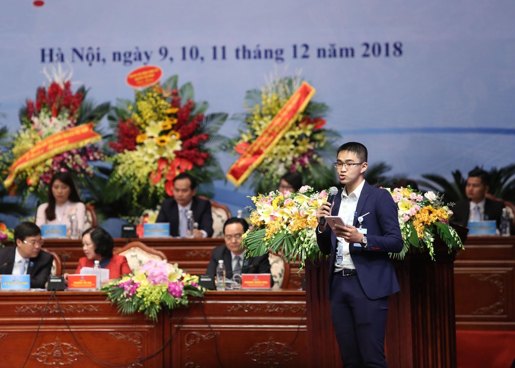 10h45: Thay mặt Đại hội, Chủ tịch Hội Sinh viên Việt Nam khóa IX Lê Quốc Phong đã trân trọng cảm ơn những tình cảm, sự quan tâm của đồng chí Thủ tướng Chính phủ dành cho Đại hội, cho sinh viên, cho Hội sinh viên Việt Nam.