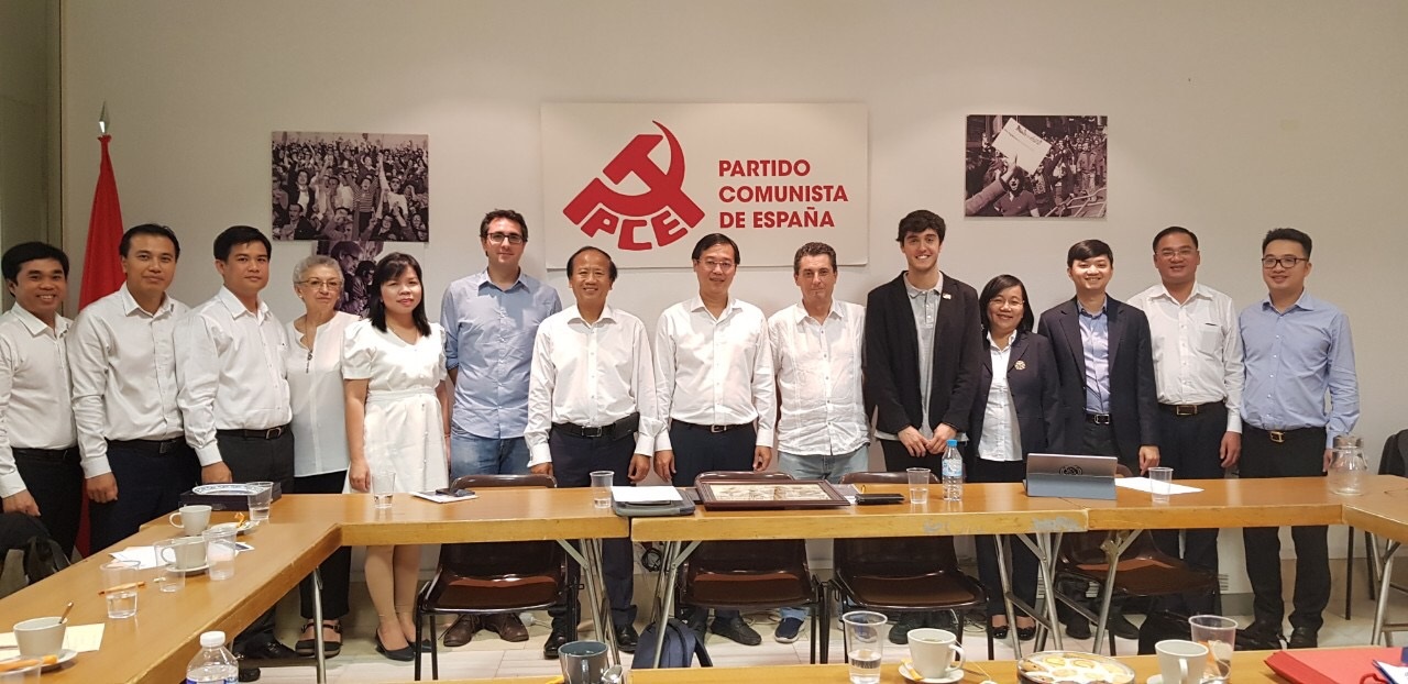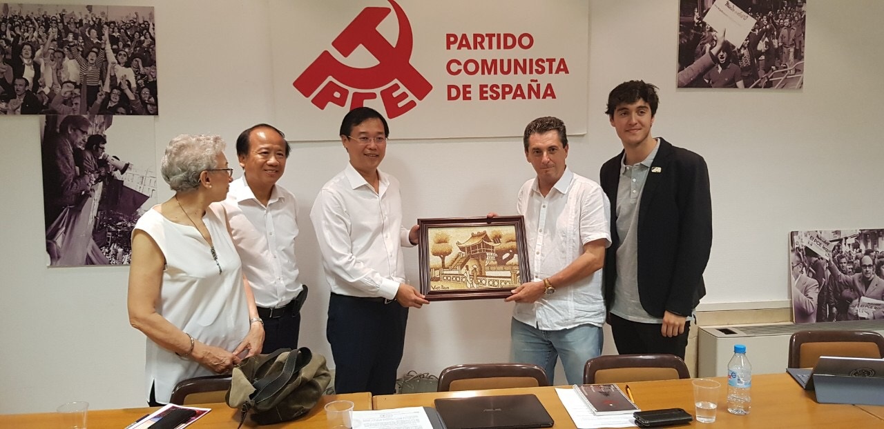 Trong khuôn khổ chương trình công tác, đoàn đã thăm và làm việc với Đảng Cộng sản Tây Ban Nha. Tiếp đoàn tại trụ sở Đảng, đồng chí Enrique Santiango, Tổng Bí thư Đảng Cộng sản Tây Ban Nha và một số thành viên của Đảng đã thông tin cho đoàn về tình hình chính trị Tây Ban Nha thời gian vừa qua, về sự tham gia của Đảng Cộng sản Tây Ban Nha trong đời sống chính trị và những thay đổi trong cấu trúc liên minh các đảng cánh Tả tại Tây Ban Nha. Đồng chí Enrique Santiango nhắc lại mối quan hệ lịch sử truyền thống và sự ủng hộ của Đảng Cộng sản Tây Ban Nha đối với Đảng Cộng sản Việt Nam và nhân dân Việt Nam cả trong thời kì chiến tranh và trong quá trình xây dựng đất nước. Đại diện Đoàn thanh niên Cộng sản Tây Ban Nha cũng giới thiệu về các phong trào hoạt động nổi bật thời gian vừa qua và bày tỏ mong muốn tiếp tục tăng cường hợp tác với Đoàn TNCS Hồ Chí Minh cả trong những hoạt động song phương và đa phương, đặc biệt là trong Liên đoàn thanh niên dân chủ thế giới.