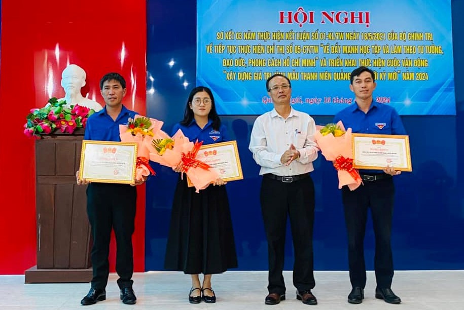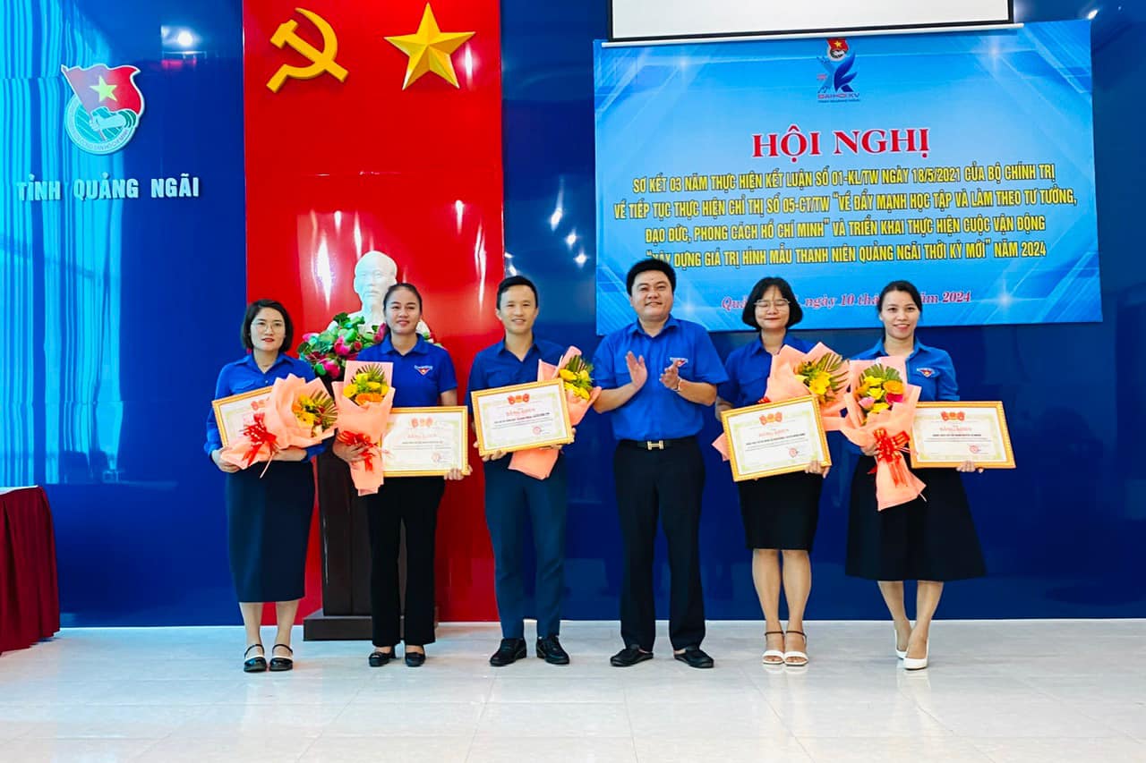 Dịp này, Ban Chấp hành Tỉnh đoàn tặng bằng khen cho 05 tập thể và 05 cá nhân có thành tích xuất sắc trong 03 năm thực hiện Kết luận số 01-KL/TW ngày 18/5/2021 của Bộ Chính trị về tiếp tục thực hiện Chỉ thị số 05-CT/TW về đẩy mạnh học tập và làm theo tư tưởng, đạo đức, phong cách Hồ Chí Minh; 03 tập thể và 03 cá nhân có thành tích xuất sắc trong triển khai thực hiện cuộc vận động “Xây dựng giá trị hình mẫu thanh niên Quảng Ngãi thời kỳ mới” giai đoạn 2019 - 2023./.